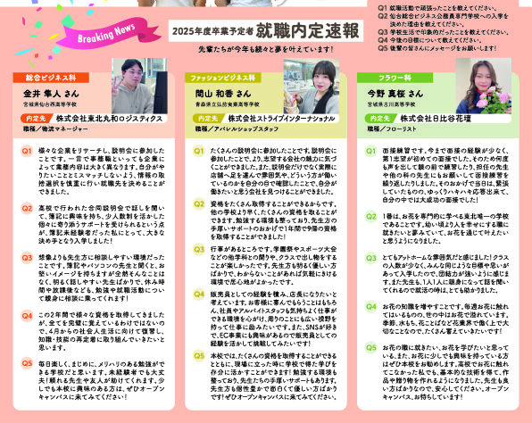 総合ビジネス科・ファッションビジネス科・フラワー科のビジネス系3学科の就職内定をご紹介!